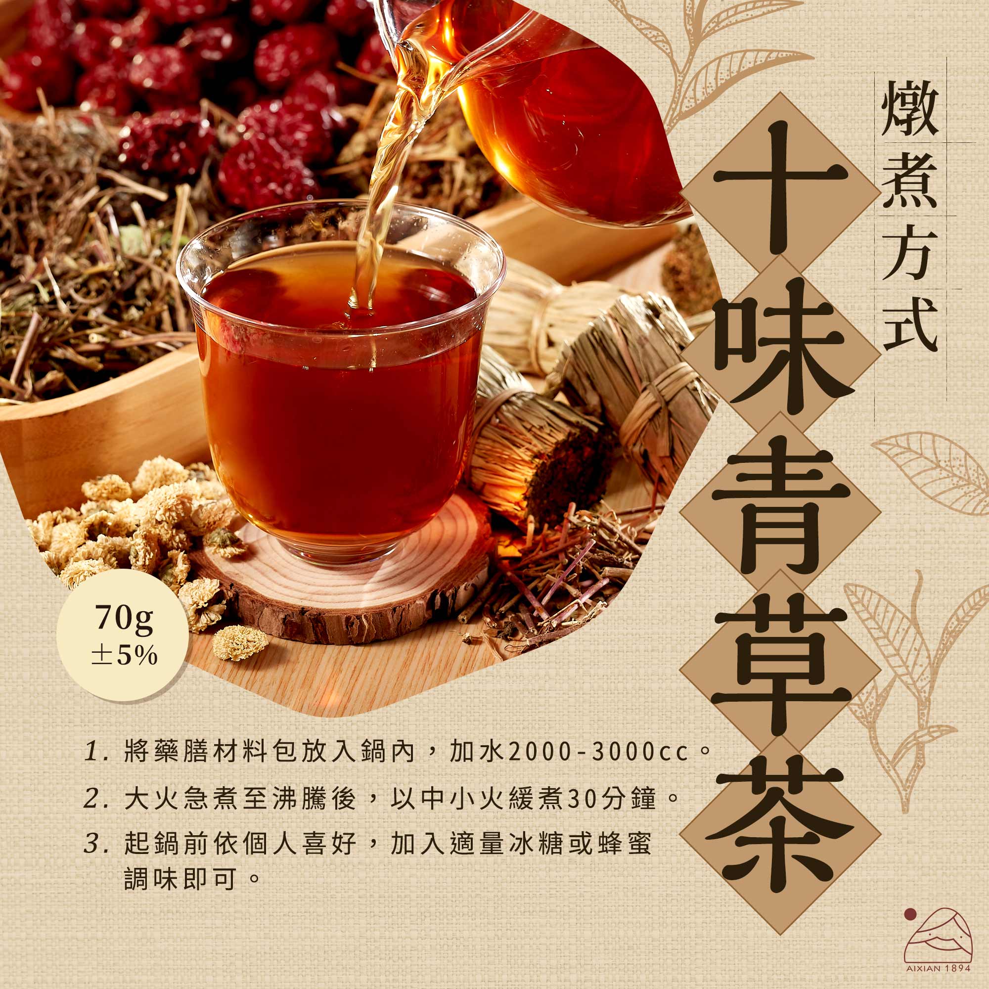 內容物:竹葉、茵陳、菊花、薄荷、鳳草、蛇舌、臭搓草、涼粉草、紅棗。(純素)