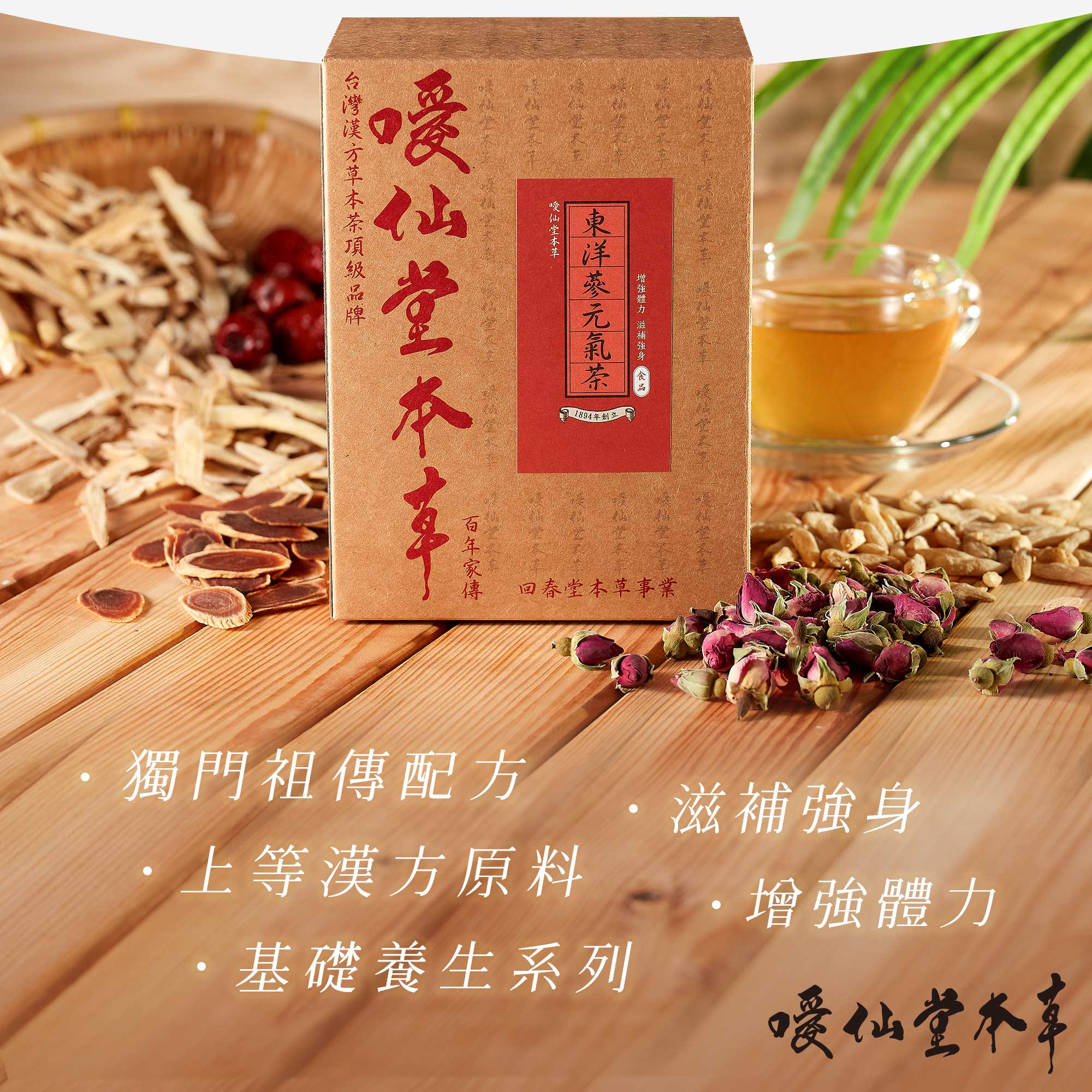 噯仙堂本草擁有百年五代家傳的本草中藥經驗,以漢方草本為基底,結合現代生物食品科技技術,研發出沖泡式漢方草本茶包,獨家調配完美比例,口感溫潤,所有的產品皆嚴選藥材研製而成,絕不使用食品添加物及調味料,100%純天然,讓您喝得健康無負擔。