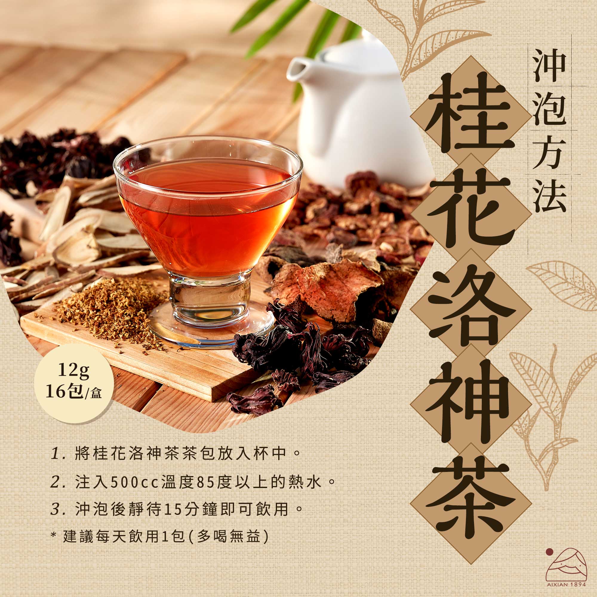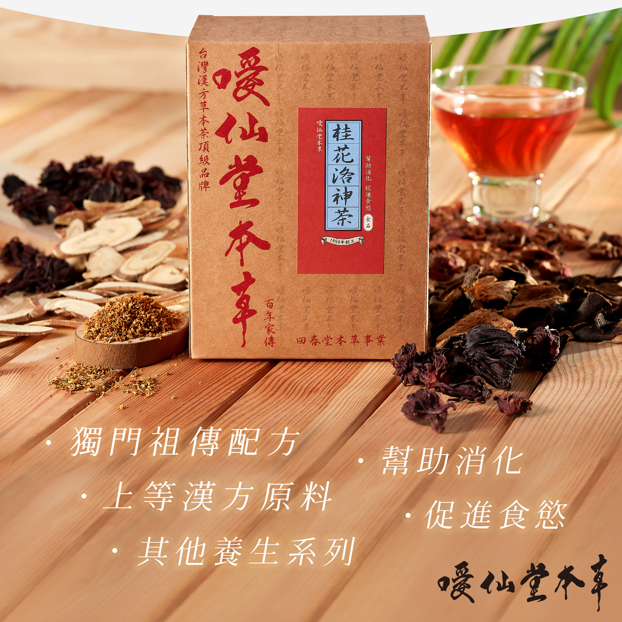 噯仙堂本草擁有百年五代家傳的本草中藥經驗,以漢方草本為基底,結合現代生物食品科技技術,研發出沖泡式漢方草本茶包,獨家調配完美比例,口感溫潤,所有的產品皆嚴選藥材研製而成,絕不使用食品添加物及調味料,100%純天然,讓您喝得健康無負擔。