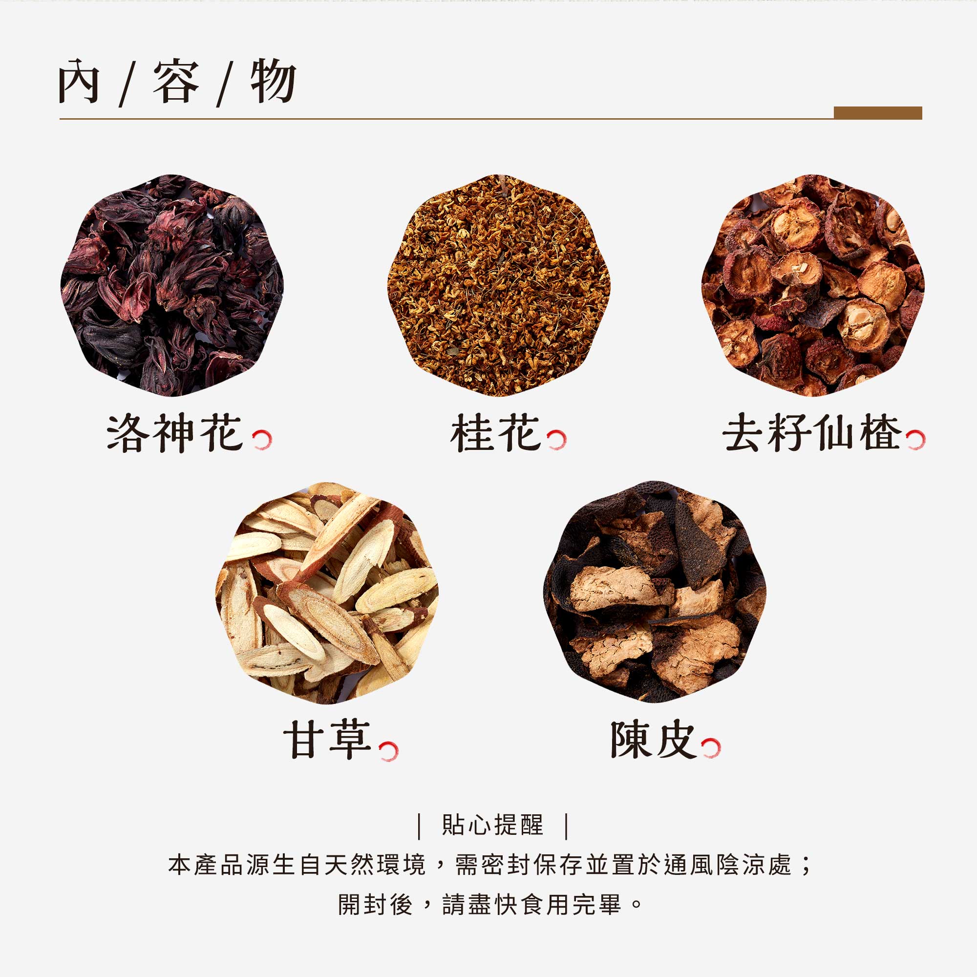 內容物: 洛神花/桂花/去籽仙楂/甘草/陳皮