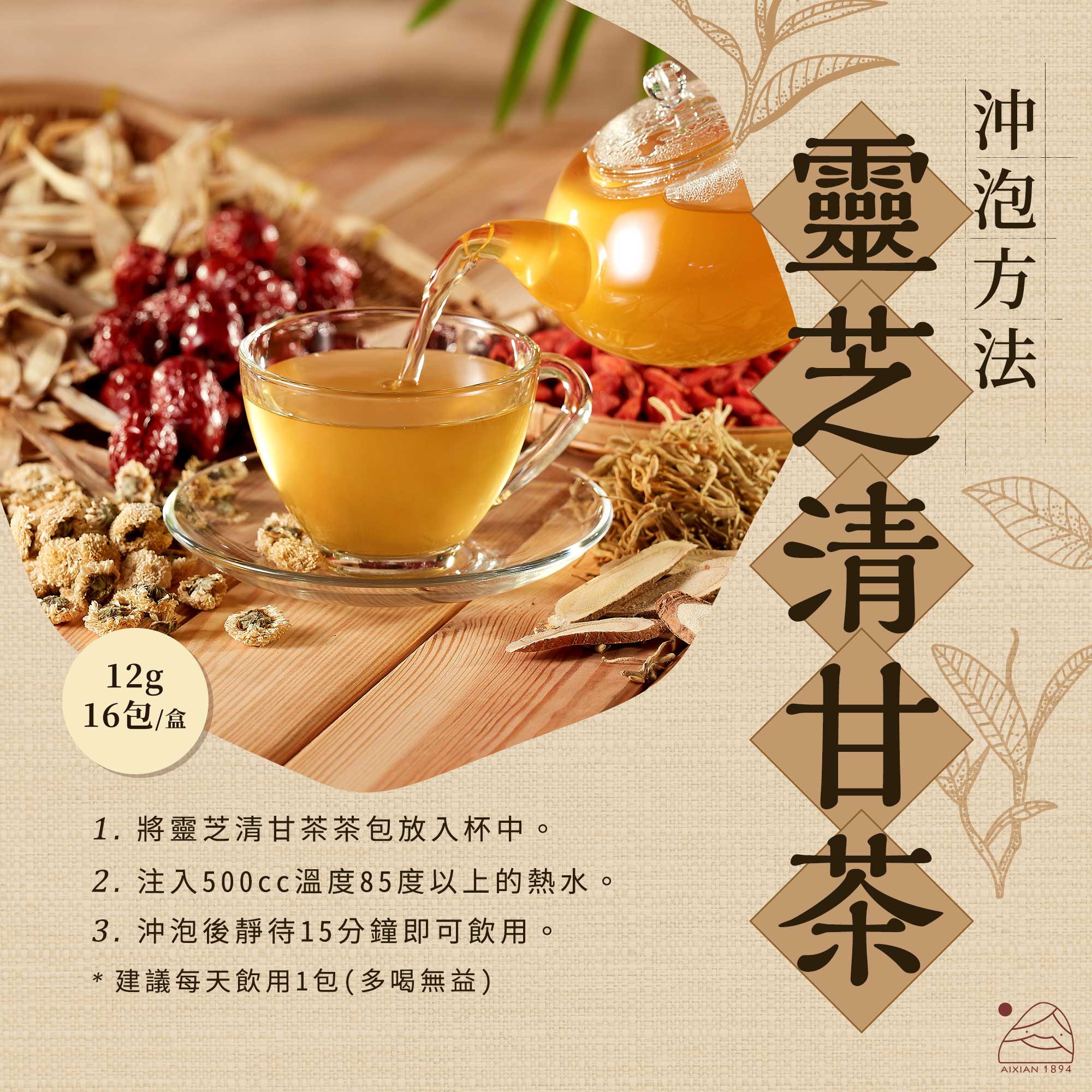 內容物:靈芝子實體(Ganoderma lucidum,固態培養)/金線蓮/菊花/山苦瓜/茵陳/蒲公英/黃花倒水蓮