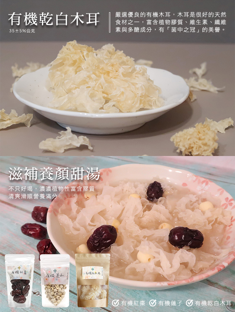 用法:本產品經嚴格挑選以去除雜物,只需簡單清水洗淨或冷水浸泡後即可搭配各式食材烹煮。