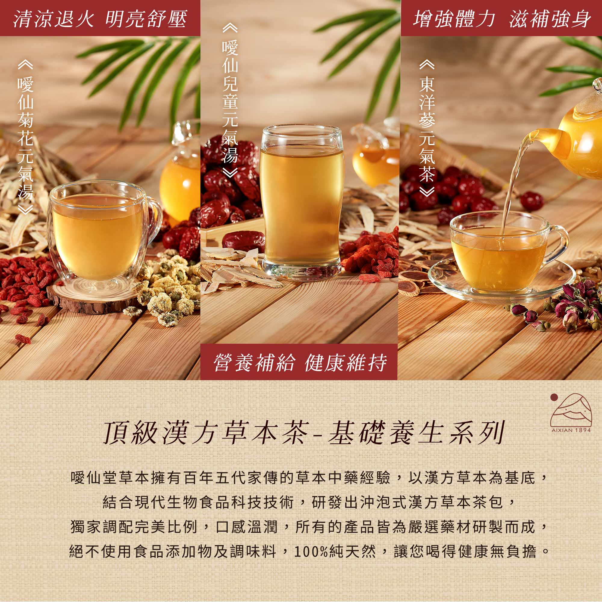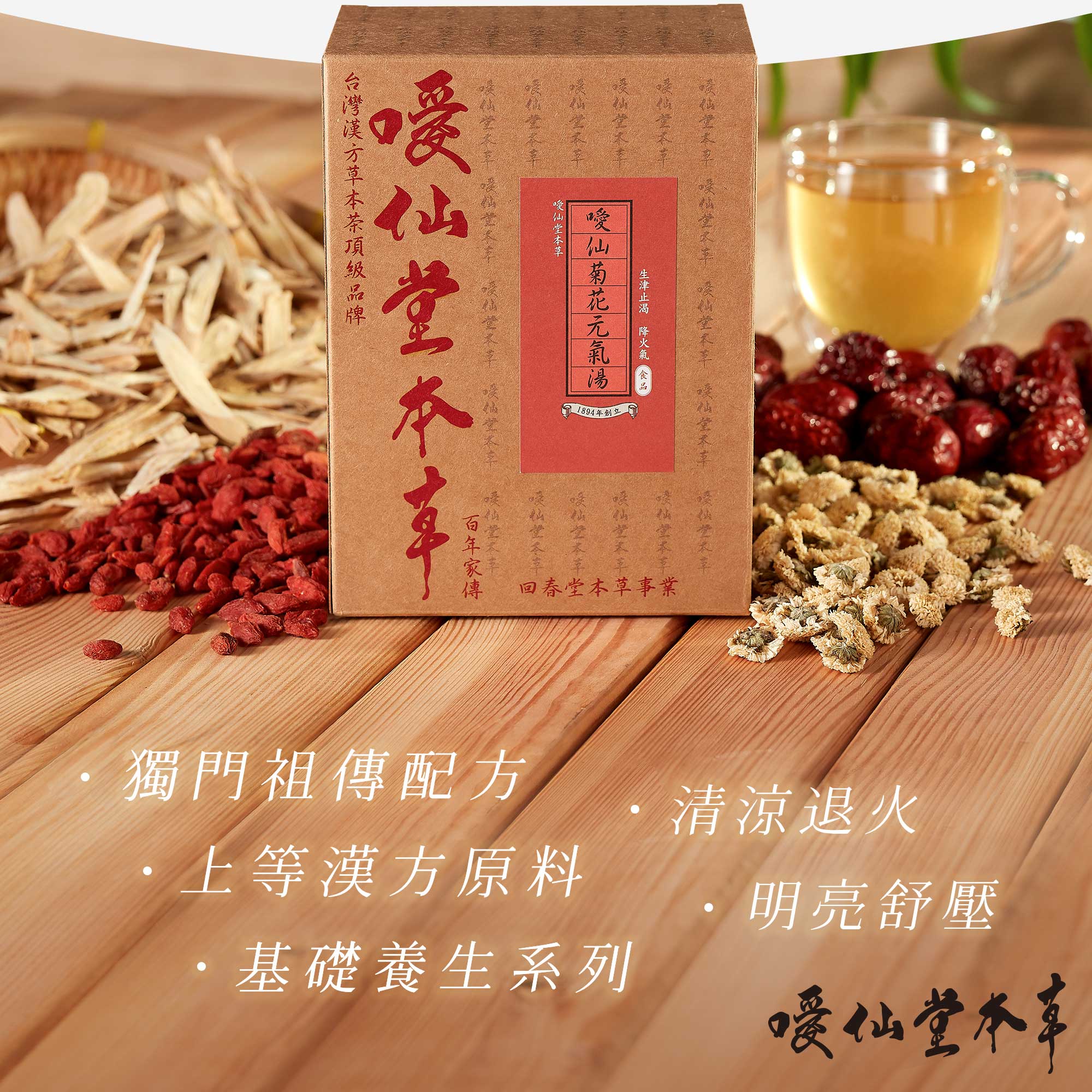 噯仙堂本草擁有百年五代家傳的本草中藥經驗,以漢方草本為基底,結合現代生物食品科技技術,研發出沖泡式漢方草本茶包,獨家調配完美比例,口感溫潤,所有的產品皆嚴選藥材研製而成,絕不使用食品添加物及調味料,100%純天然,讓您喝得健康無負擔。