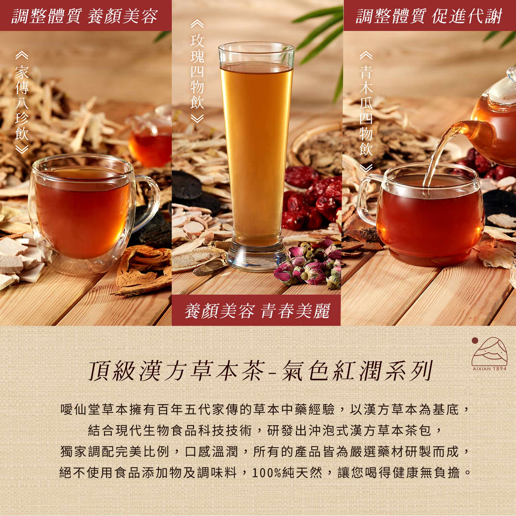 噯仙堂本草擁有百年五代家傳的本草中藥經驗,以漢方草本為基底,結合現代生物食品科技技術,研發出沖泡式漢方草本茶包,獨家調配完美比例,口感溫潤,所有的產品皆嚴選藥材研製而成,絕不使用食品添加物及調味料,100%純天然,讓您喝得健康無負擔。